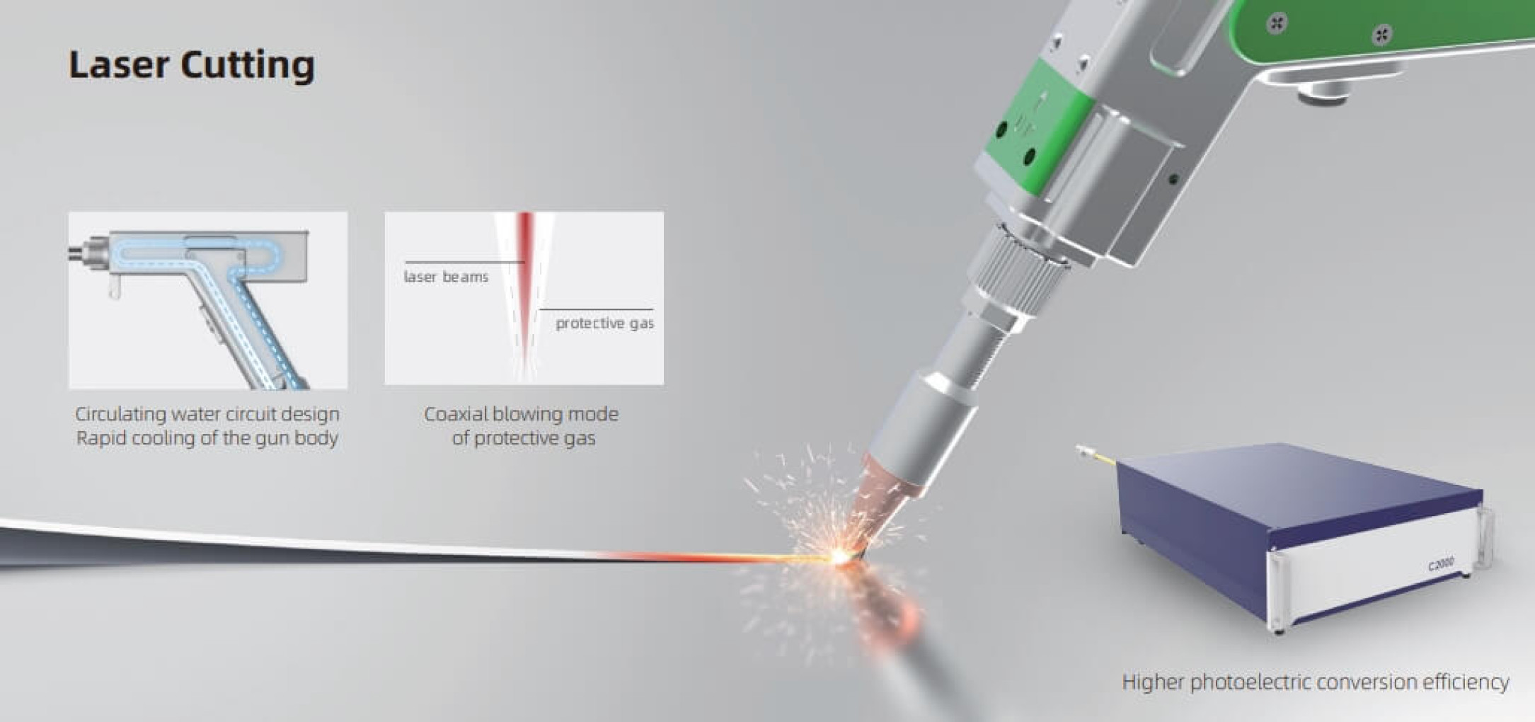 Многофункционалната ръчна машина за лазерно заваряване с файбър лазер , рязане и почистване е много ефективна и отговаря на разнообразни нужди, включително, заваряване и почистване на повърхности, както и рязане на метал. Тя предлага различни възможности за заваряване. Корпусът на заваръчната машина е ергономично проектиран, лек и компактен, за да осигури оптимална производителност.
