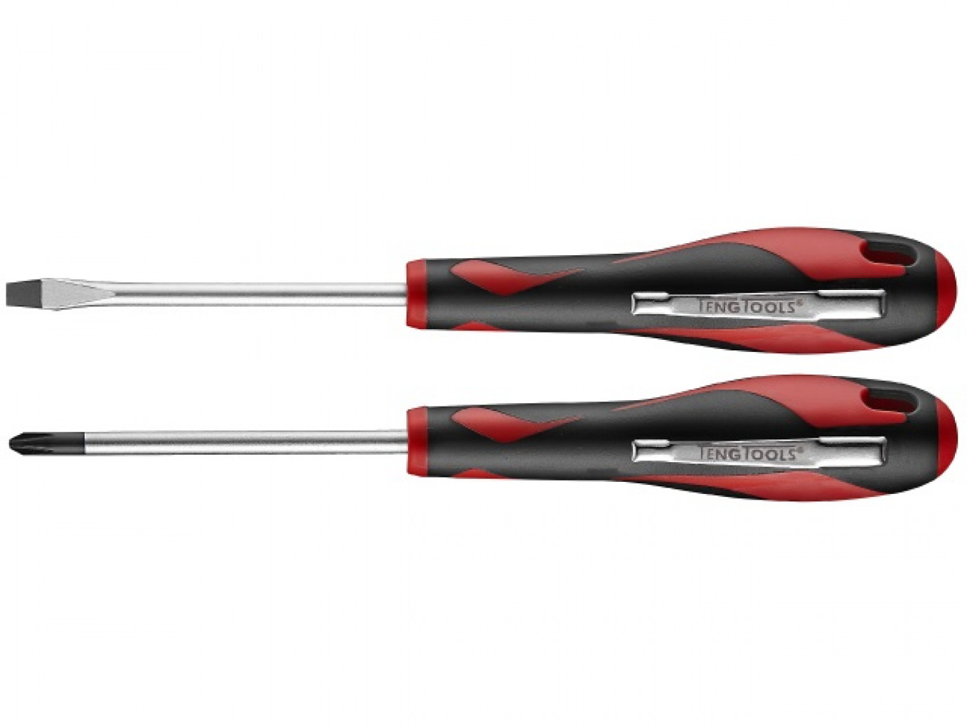 Комплект от 2 отвертки с клипс за джоб, ергономични двукомпонентни дръжки и с отвор за окачване.
