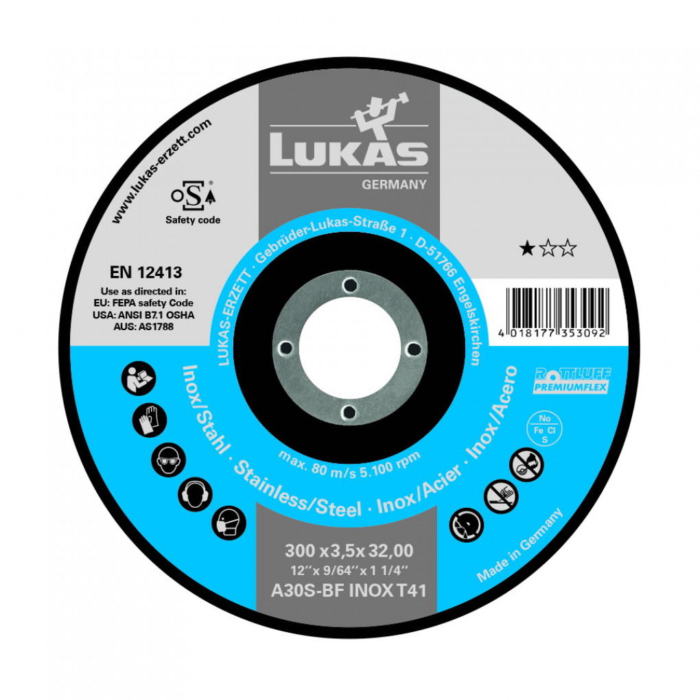 Дисковете за рязане на LUKAS са предназначени за рязане на стомана, неръждаема стомана, цветни метали, камък, чугун и други материали. Режещите дискове са на разположение за свободна употреба на ъглошлайфи или за стационарни приложения. Зърното, връзката, структурата, формата и дизайна на всички дискове за рязане са разработени за максимална ефективност и икономичност.