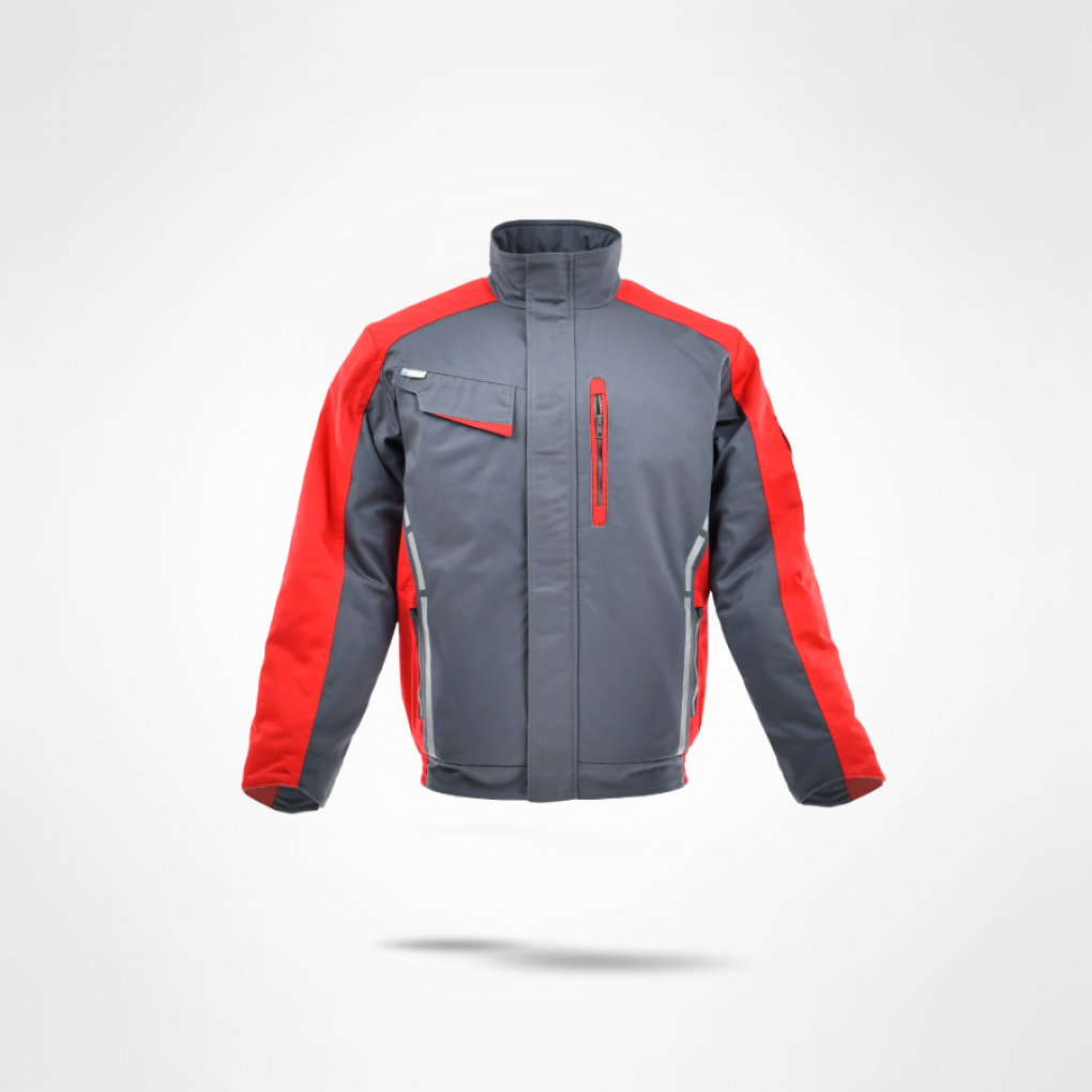 Закопчаване отпред с цип, покрит с пластрон, джоб на гърдите вдясно с капак, страничен джоб на гърдите вляво, два