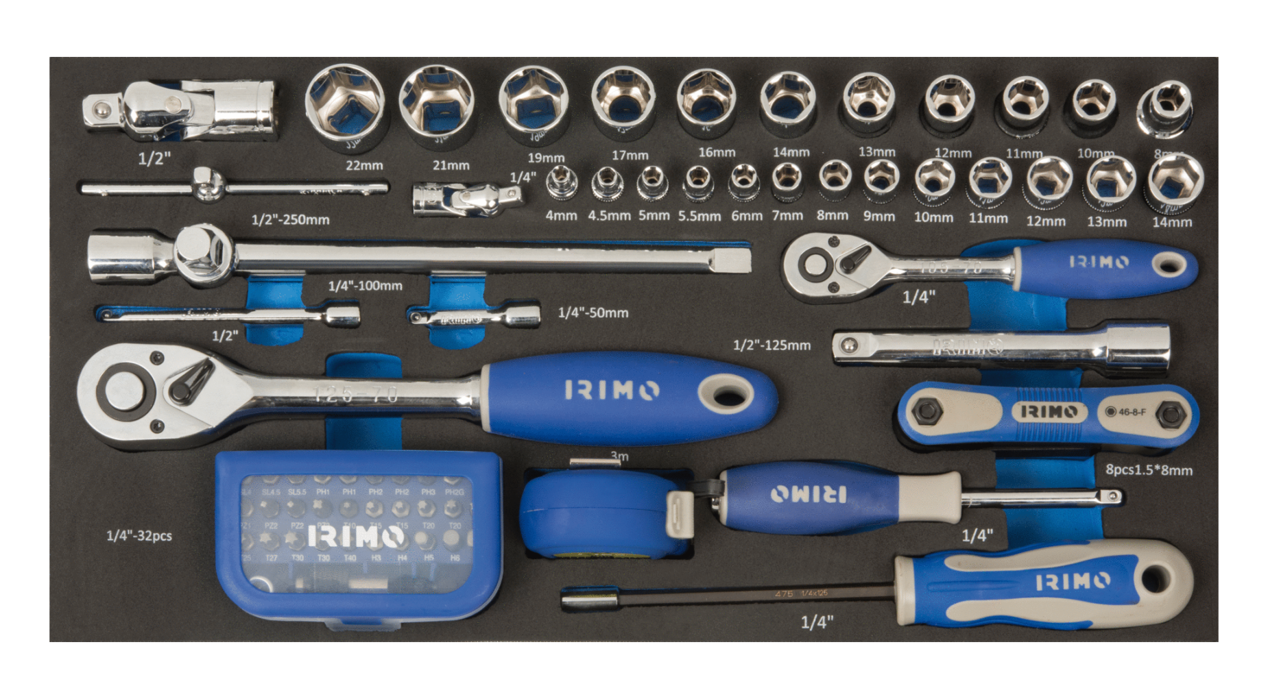 - Ключове звездогаечни: 8, 9, 10, 11, 12, 13, 14, 17, 19 mm