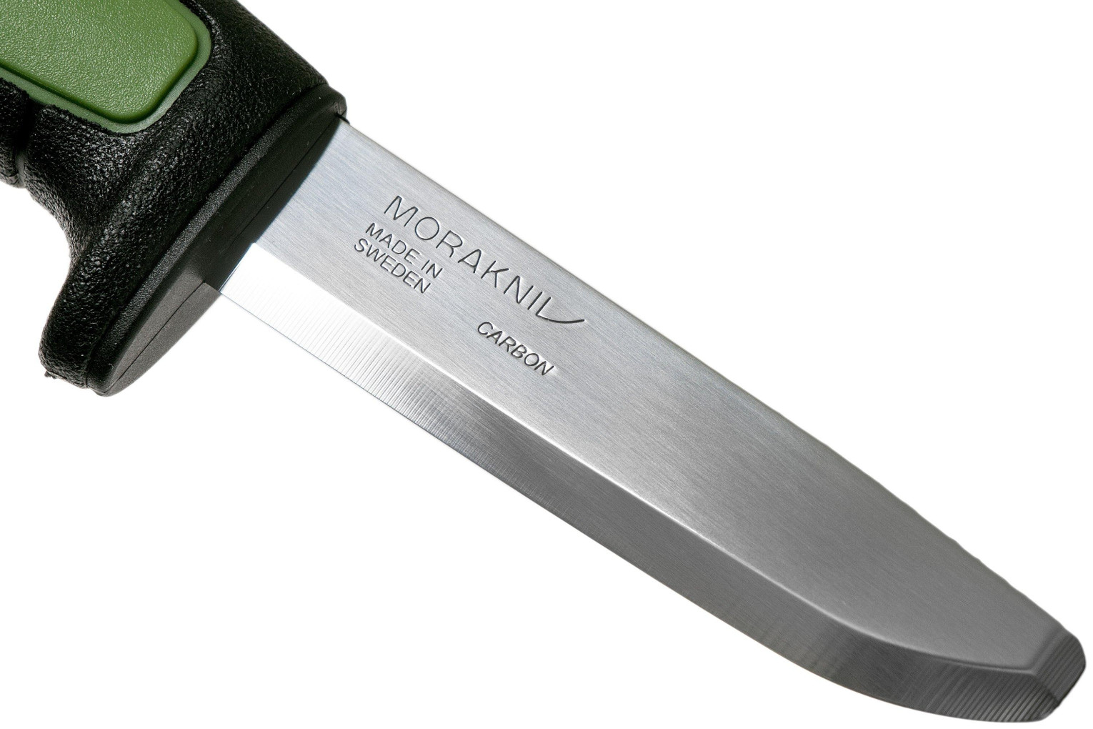 Острието му е направено от висококачествена въглеродна стомана, която се произвежда във фабриката в градчето MORA, по секретна рецепта. Въглеродната стомана също прави ножа лесен за повторно заточване, така че можете да го използвате отново и отново. Само не забравяйте, че въглеродната стомана може да бъде повлияна от влага и корозивни среди. Затова създайте си навик да избършете ножа и да намажете острието след употреба.