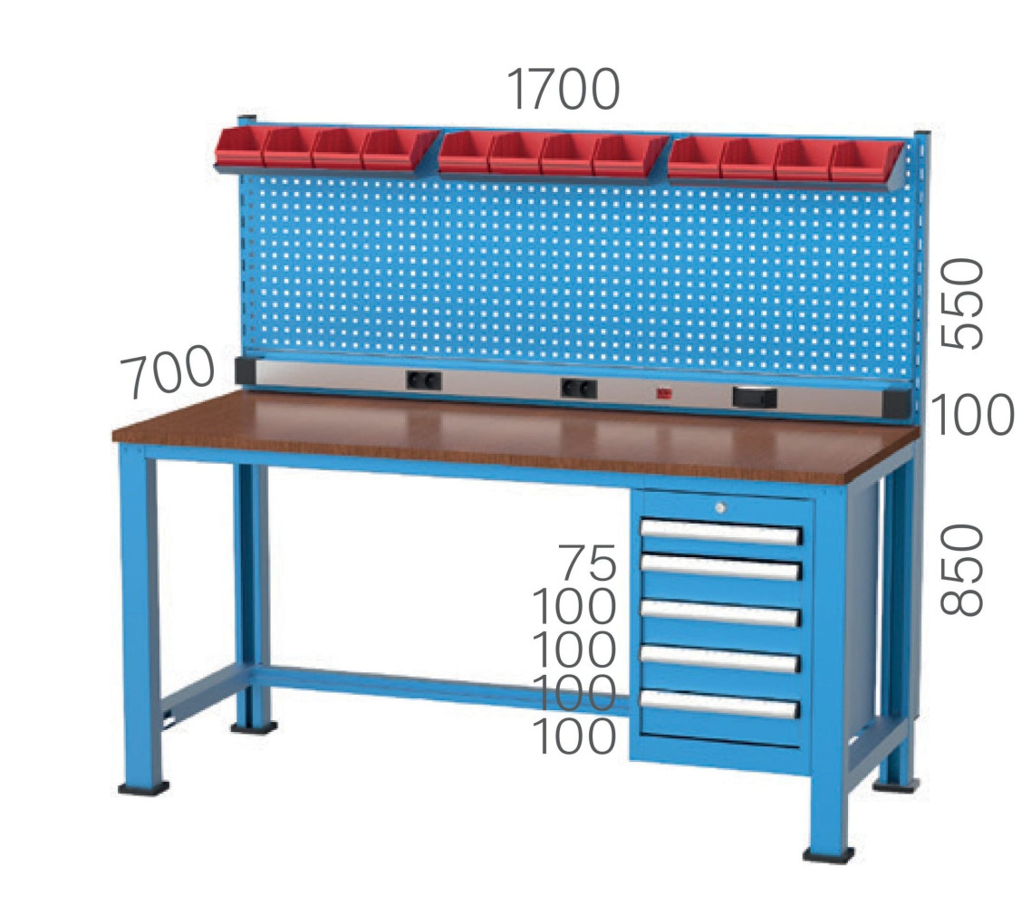 - Панел за инструменти, панел с контакти и 2 рафта с пластмасови кутии;