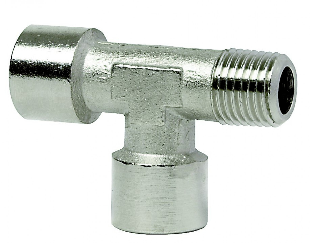 Т-коляно 1/4" вътрешна/външна/вътрешна цилиндрична резба.
