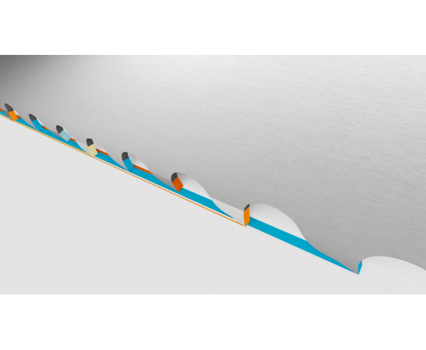 Лентата е с профил PF, който се характеризира с положителен наклон на ъгъла на зъбите, което води до по-ниско напрежение при рязане, по-гладки повърхности и намалява риска от чупене на зъбите.