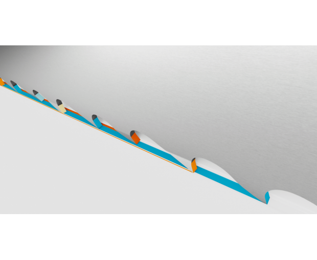Лентата е с профил PQ, който се характеризира с прецизно шлифовани зъби с ъгъл от 17° за лесно проникване в материала