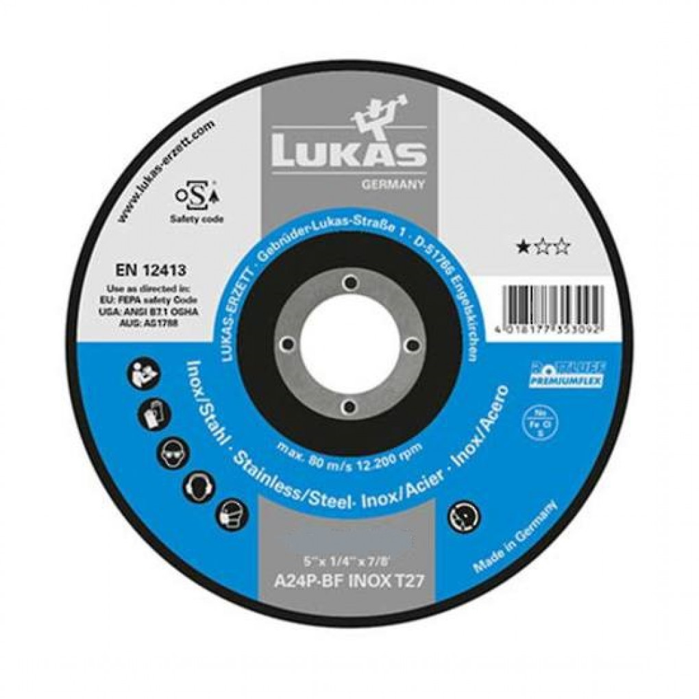 Диск за рязане на неръждаема стомана LUKAS е предназначен за рязане на стомана, неръждаема стомана, цветни метали, камък, чугун и други материали. Режещите дискове са на разположение за свободна употреба на ъглошлайфи или за стационарни приложения. Зърното, връзката, структурата, формата и дизайна на всички дискове за рязане са разработени за максимална ефективност и икономичност.