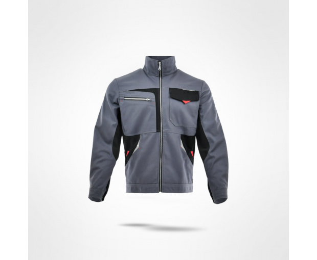 два долни странични вътрешни джоба, регулиране на маншетите с копче. Цвят: Тъмносиво / черно; Кралскосиньо / черно