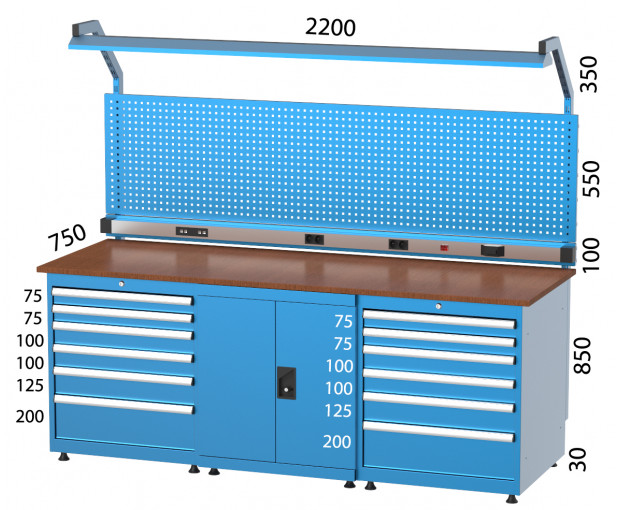 - Чекмеджетата са монтирани на плъзгачи с ролкови лагери, като капацитетa на товароносимост на всяко чекмедже e до 80 kg;