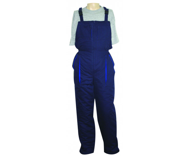 Зимен комплект, изработен от плат 100% памук, 240 г/м2, капитонирана вата 150 г/м2 на предницата и гърба на якето и капитонирана вата 120 г/м2 на ръкавите на якето и полугащеризона.