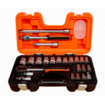 - 18 бр. 1/2" Шестостенни вложки: 10, 11, 12, 13, 14, 15, 16, 17, 18, 19, 2,0 21, 22, 23, 24, 27, 30, 32 mm