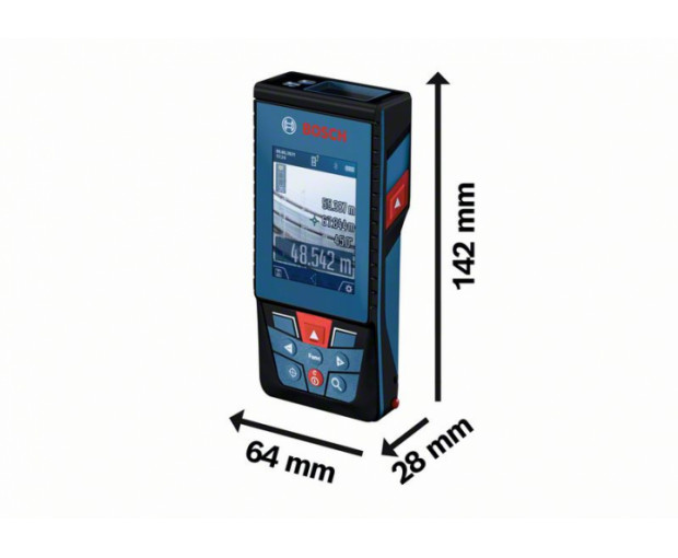 Точно 100-метрово лазерно измерване благодарение на визьора на цифровата камера с функция за мащабиране. Голям IPS цветен дисплей с висок контраст и обръщащ се екран осигурява оптимално четене. Лазерната мярка се свързва чрез Bluetooth за ефективно документиране на данни.