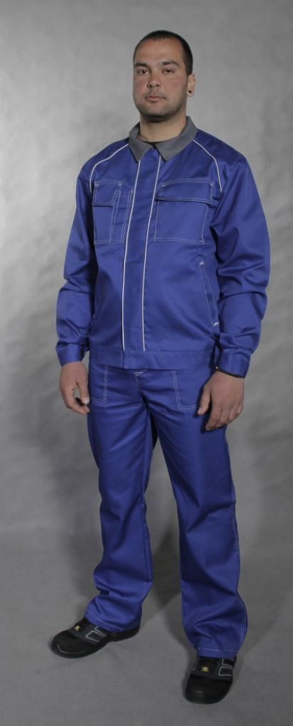Полугащеризон - закопчаване отпред с копчета, два долни странични джоба, джоб с капак на платката на гърдите, един заден и един инструментален джоб на десния крачол, контрастни декоративни шевове.