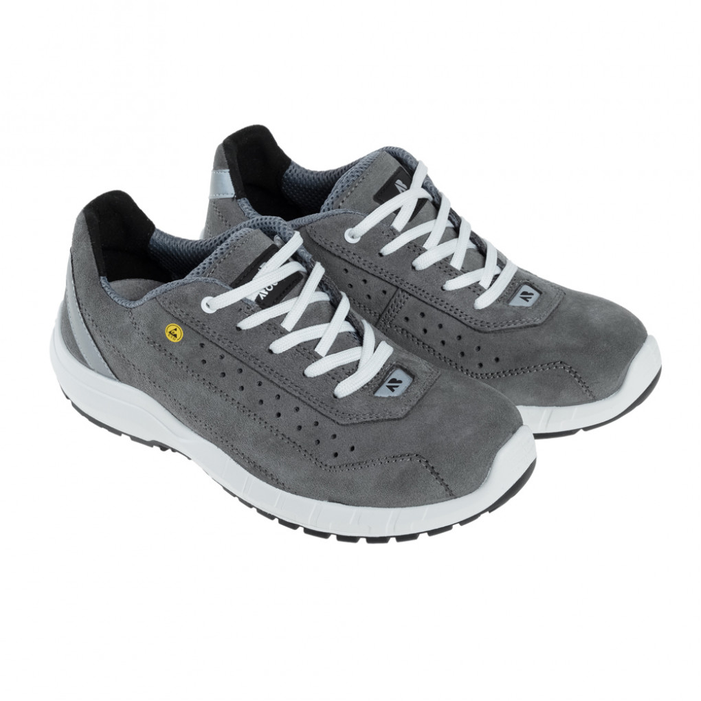 Сая: Перфориран дишащ велур с елементи с висока видимост. С вградена памучна лента със сребърни нишки увеличаваща антистатичния капацитет на обувките.