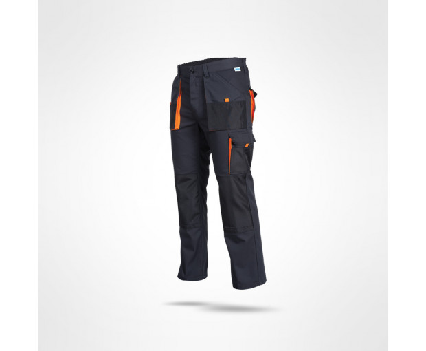 джоб с капак на левия крачол, два задни обемни джоба с капаци, троен вътрешен шев на крачола и на седалището. Цвят: черно / червено; черно / жълто; черно / оранжево
