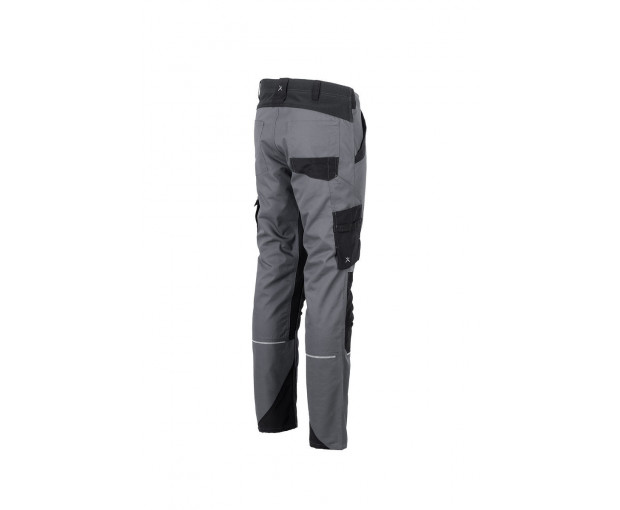 Предно закопчаване с цип и тик-так копче, два предни джоба, джоб на левия крачол с капак и страничен цип, инструментален джоб на десния крачол, два задни джоба.