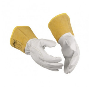 Универсална работна ръкавица с ластик над дланта от цепена телешка кожа, подплата в дланта и 7,5 cm предпазен маншет.Гръб от цепена кожа, длан от гладка кожа.ЕN 388:2142X.