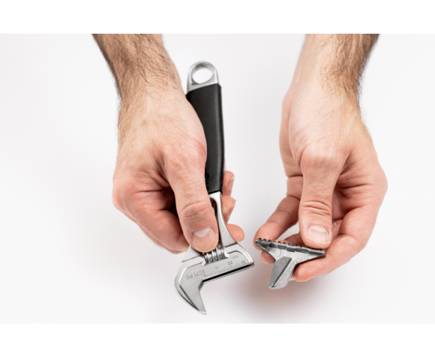 - С обръщане на челюстта раздвиженият ключ се превръща в тръбен ключ