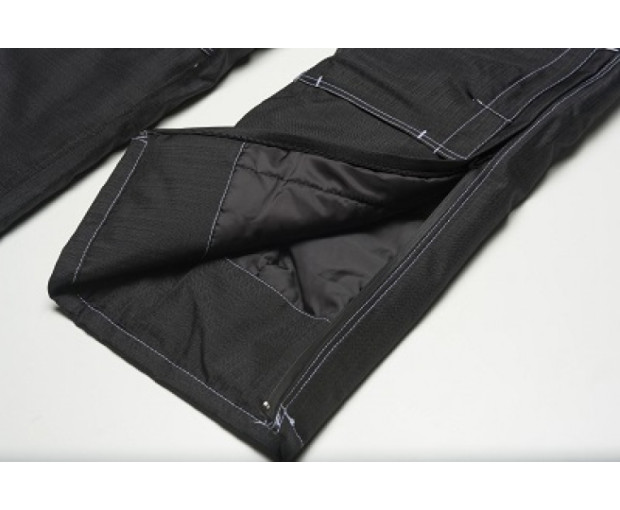 Два предни джоба с водонепропускливи ципове, три джоба отстрани на левия крачол – един с водонепропусклив цип, един - с капак и велкро и един джоб за мобилен телефон, двоен инструментален джоб на десния крачол, два задни джоба с капаци и велкро ленти, светлоотразителен кант в областта на коленете.