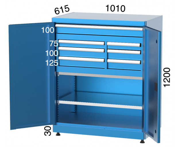 - Чекмеджетата са монтирани на плъзгачи с ролкови лагери, като капацитетa на товароносимост на всяко чекмедже e до 80 kg;