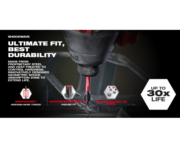 - Компресираният въртящ се връх осигурява най-доброто прилягане с главата на винта, намалявайки натоварването, което води до по-дълъг живот на консуматива.