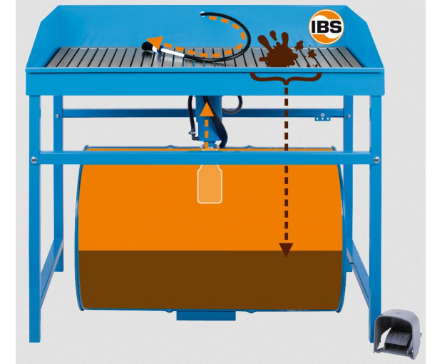 Почистващият уред IBS тип М се комбинира с 200 – литров варел със специална почистваща IBS течност. Размерите 1135х660мм позволяват почистване на по-големи и тежки части 250 кг. (500кг вариант).