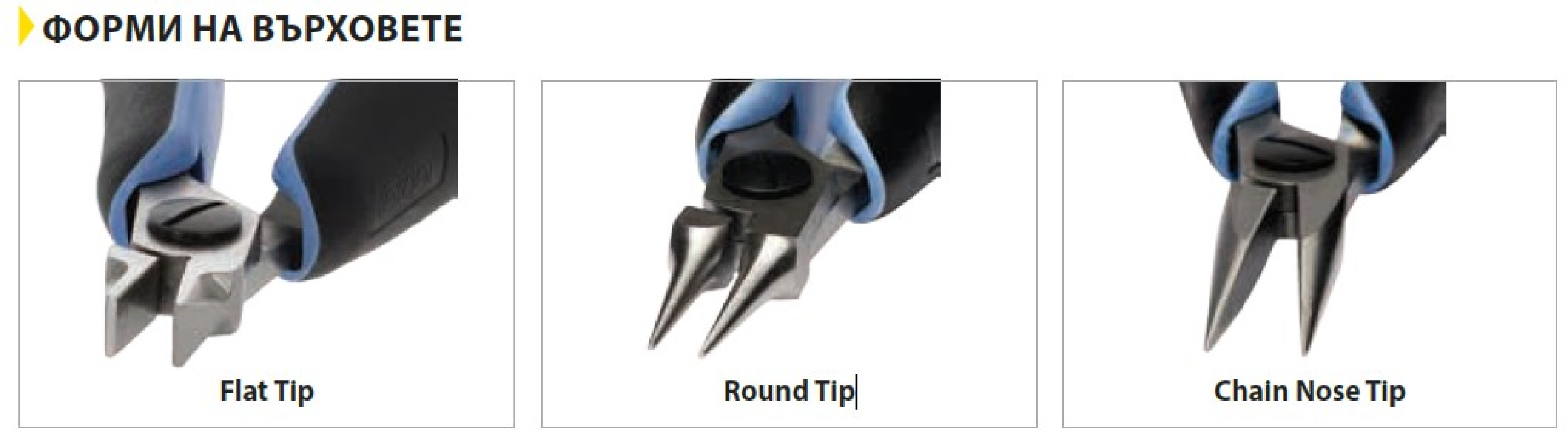 Flush (NANO Връх): При рязане оставя тесен и къс връх по линията на “прищипване”; Подобрява спойваемостта • Използва се предимно при производство на медицински изделия и бижута