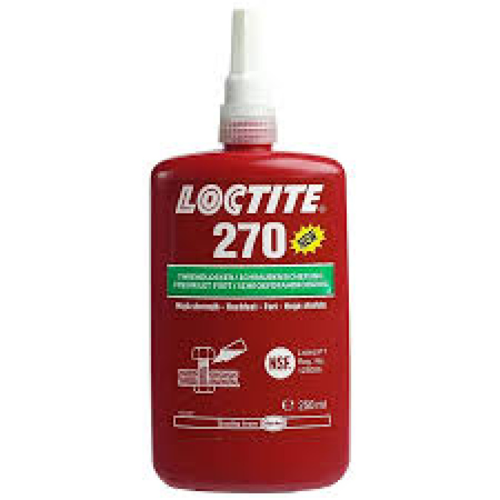 Loctite 270 служи за постоянно скрепяване на възли, които не трябва да се разхлабват. Продуктът действа върху всички метали, включително пасивни субстрати като неръждаема стомана, алуминий, обработени повърхности. Понася леки замърсявания от индустриални масла, например моторно масло, масла против корозия и флуиди за рязане. Може да се разглоби при загряване до 300 °C.